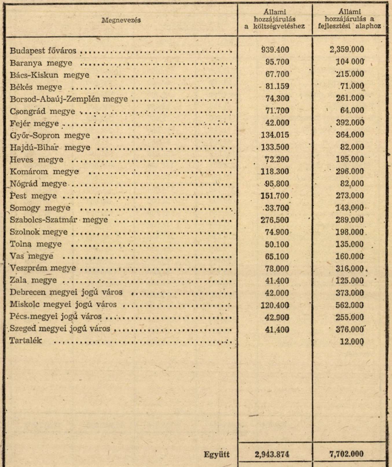 - a tanácsi fejlesztési alapba átengedett városi és községi hozzájárulásra,