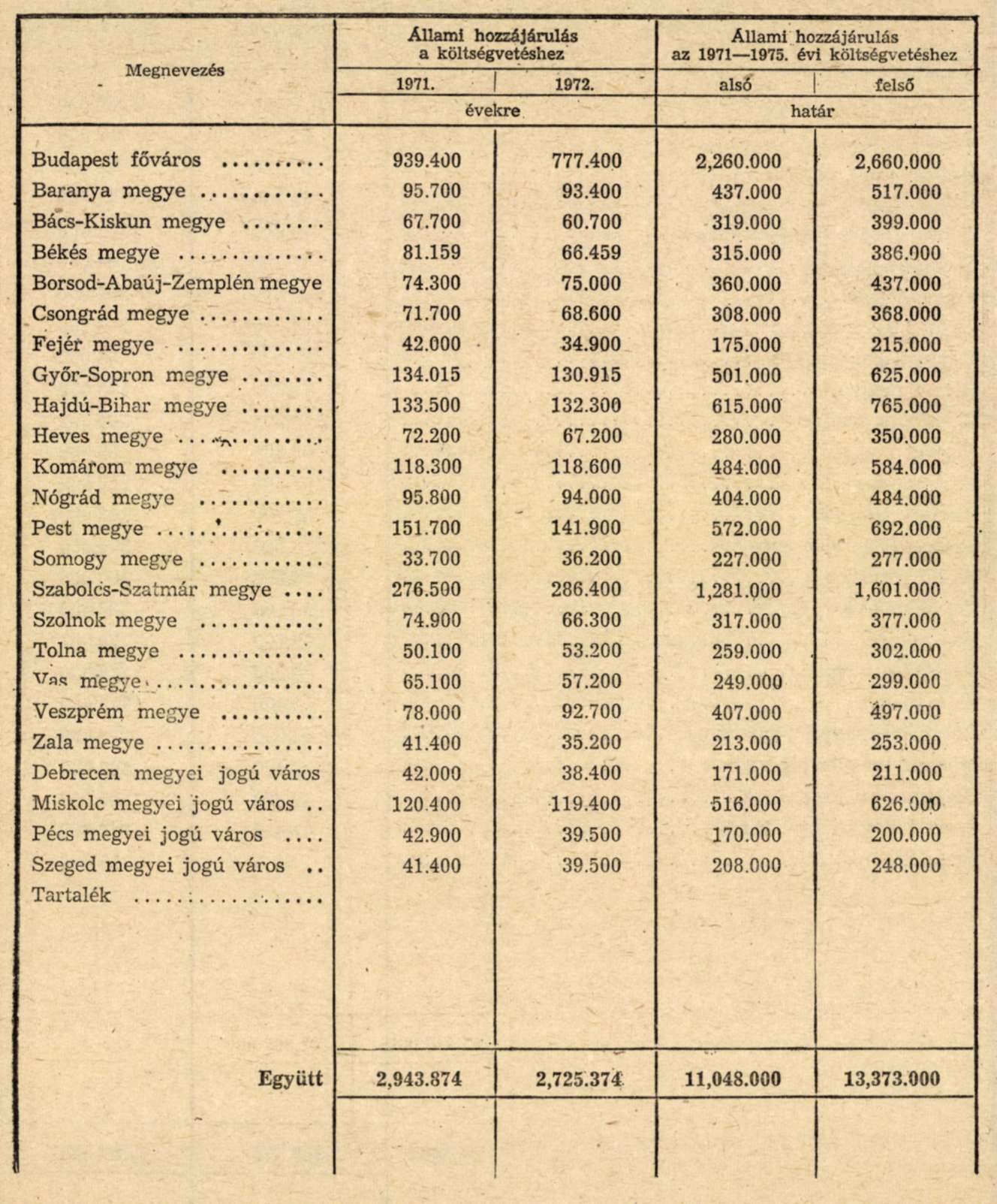 ÁLLAMI HOZZÁJÁRULÁS A TANÁCSOK 1971. ÉVI KÖLTSÉGVETÉSÉHEZ ÉS FEJLESZTÉSI ALAPJÁHOZ
