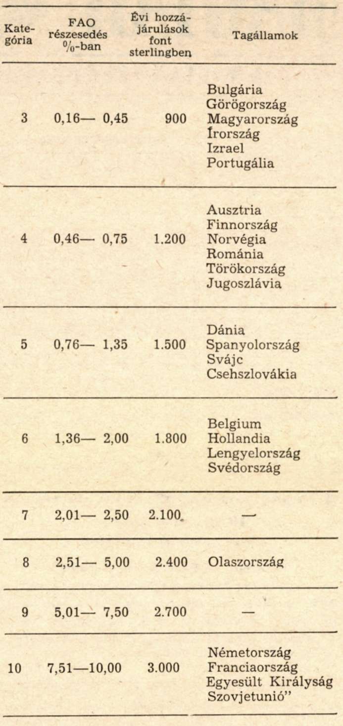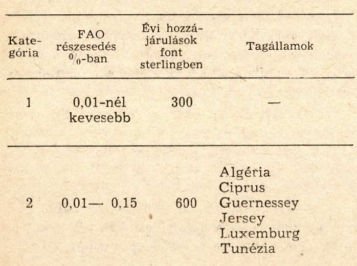 Hozzájárulási táblázat, amelyet a Tanács 1968. szeptember 18-án fogadott el a FAO (az Egyesült Nemzetek Élelmezési és Mezőgazdasági Szervezete) tagállamai által a FAO 1966-1967. költségvetéséhez való hozzájárulásai alapján