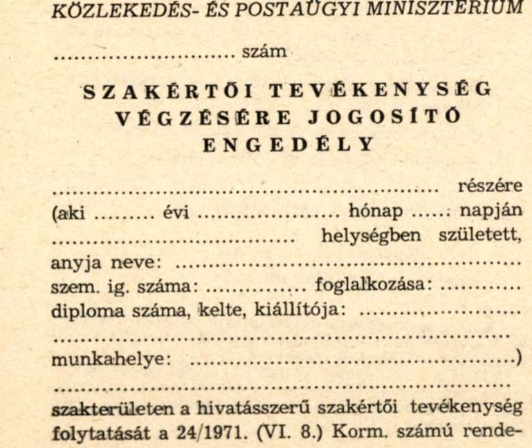 *** Ezen a szakterületen középfokú iskolai végzettséggel rendelkező személy részére is engedélyezhető a szakértői engedély, ha legalább 15 éves szakmai gyakorlata és gépjárművezetői engedélye van.
