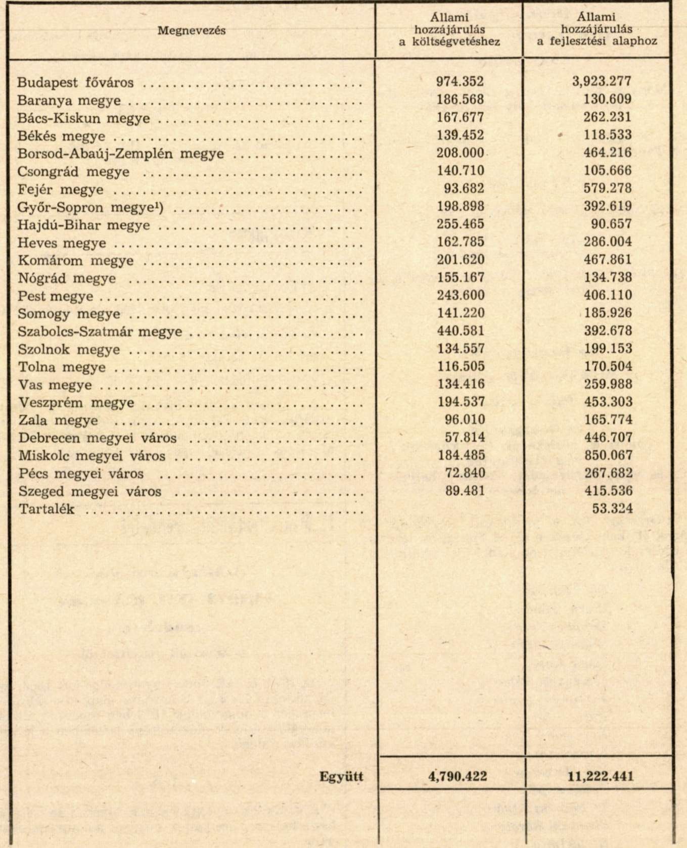 ÁLLAMI HOZZÁJÁRULÁS A TANÁCSOK KÖLTSÉGVETÉSÉHEZ ÉS FEJLESZTÉSI ALAPJÁHOZ