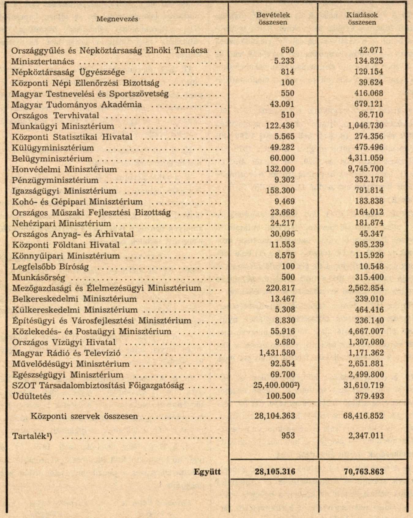 1. § Az Országgyűlés a Magyar Népköztársaság 1973. évi költségvetésének
