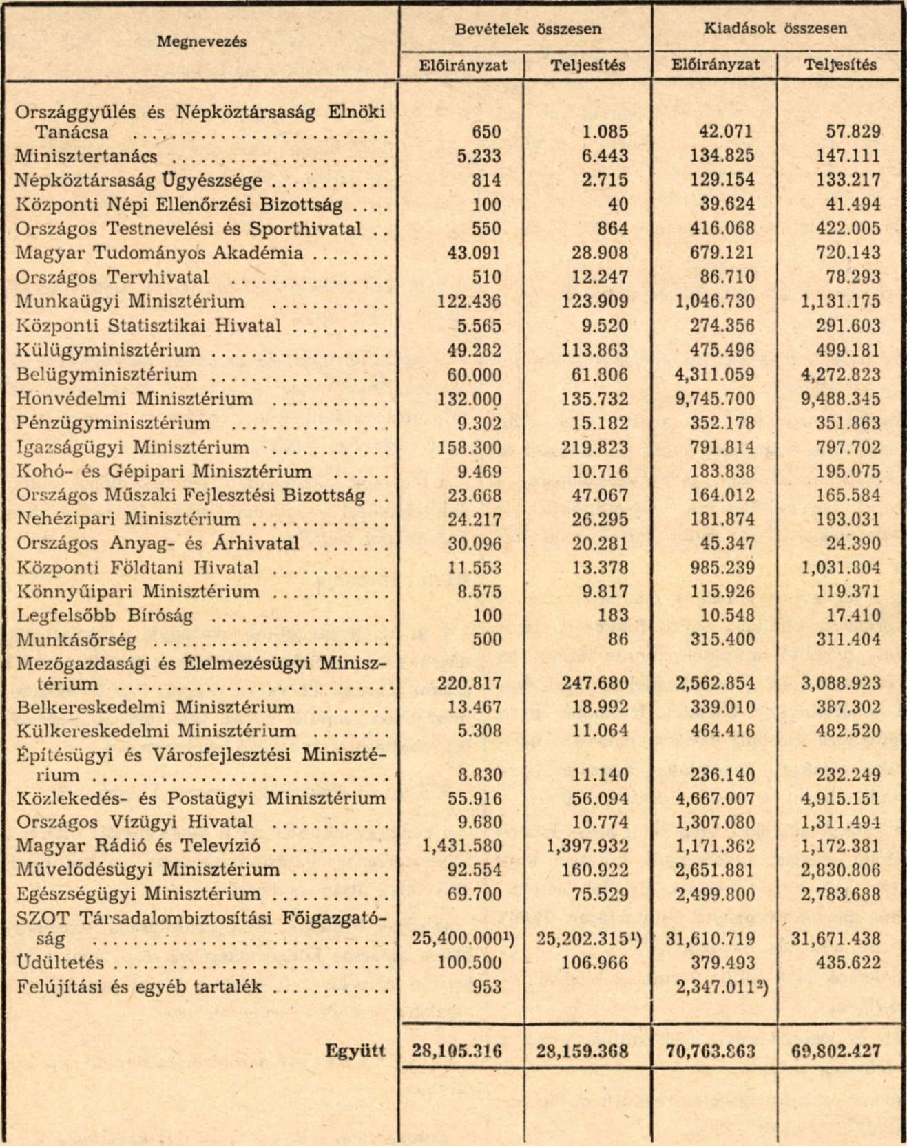 3. § Az 1. §-ban foglalt kiadásokból beruházásra, a tanácsi fejlesztési alapok pénzeszközeinek növelésére, a magánlakásépítéshez nyújtott állami támogatásra, egyes állami beruházásokkal kapcsolatos forgóalapjuttatásra, vállalati forgóalap-kiegészítésre, központi készletezésre ás a mezőgazdasági szövetkezetek beruházásainak támogatására elszámolt kiadások összege 46 125 millió forint, a kiadások 19,8%-a: