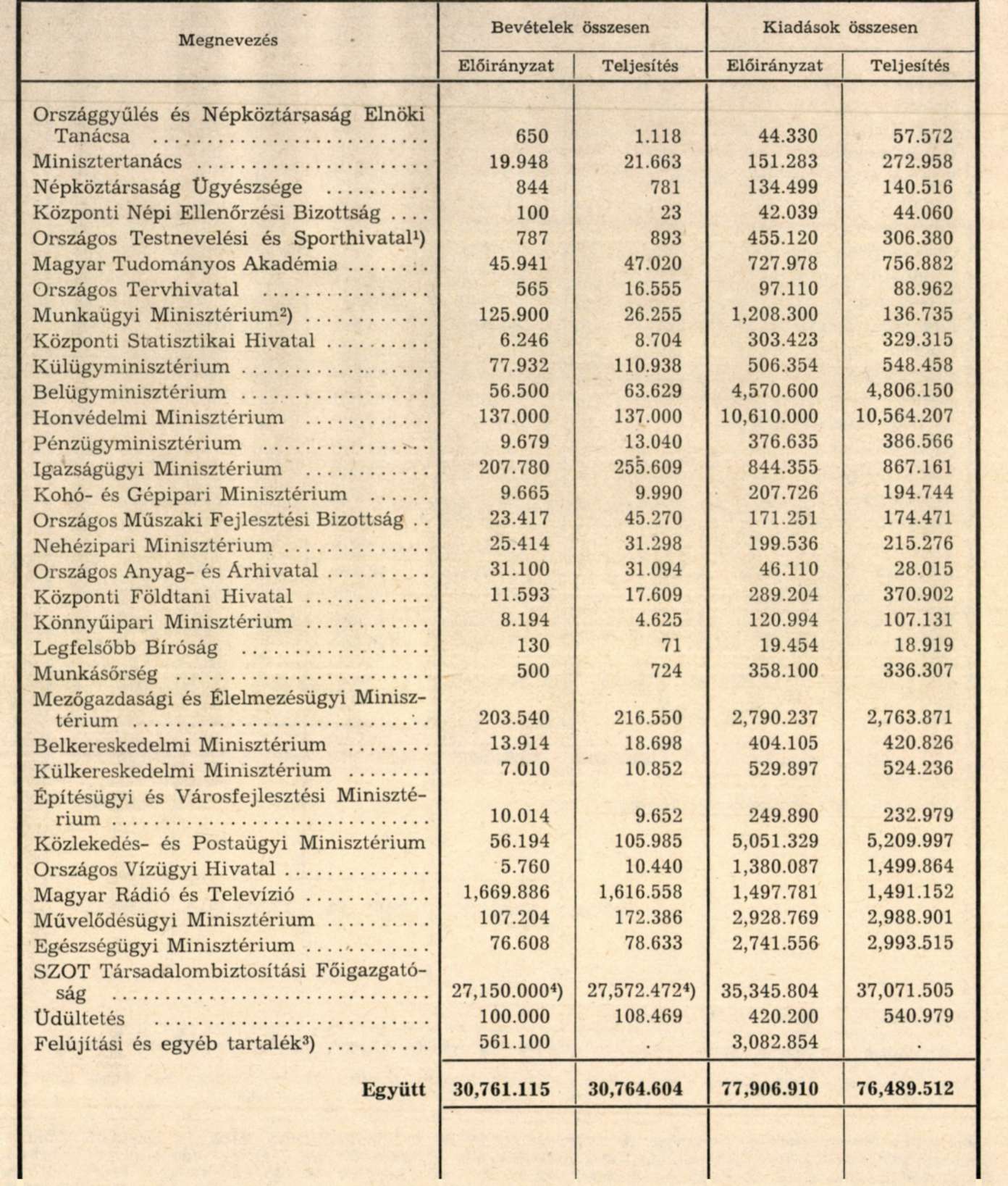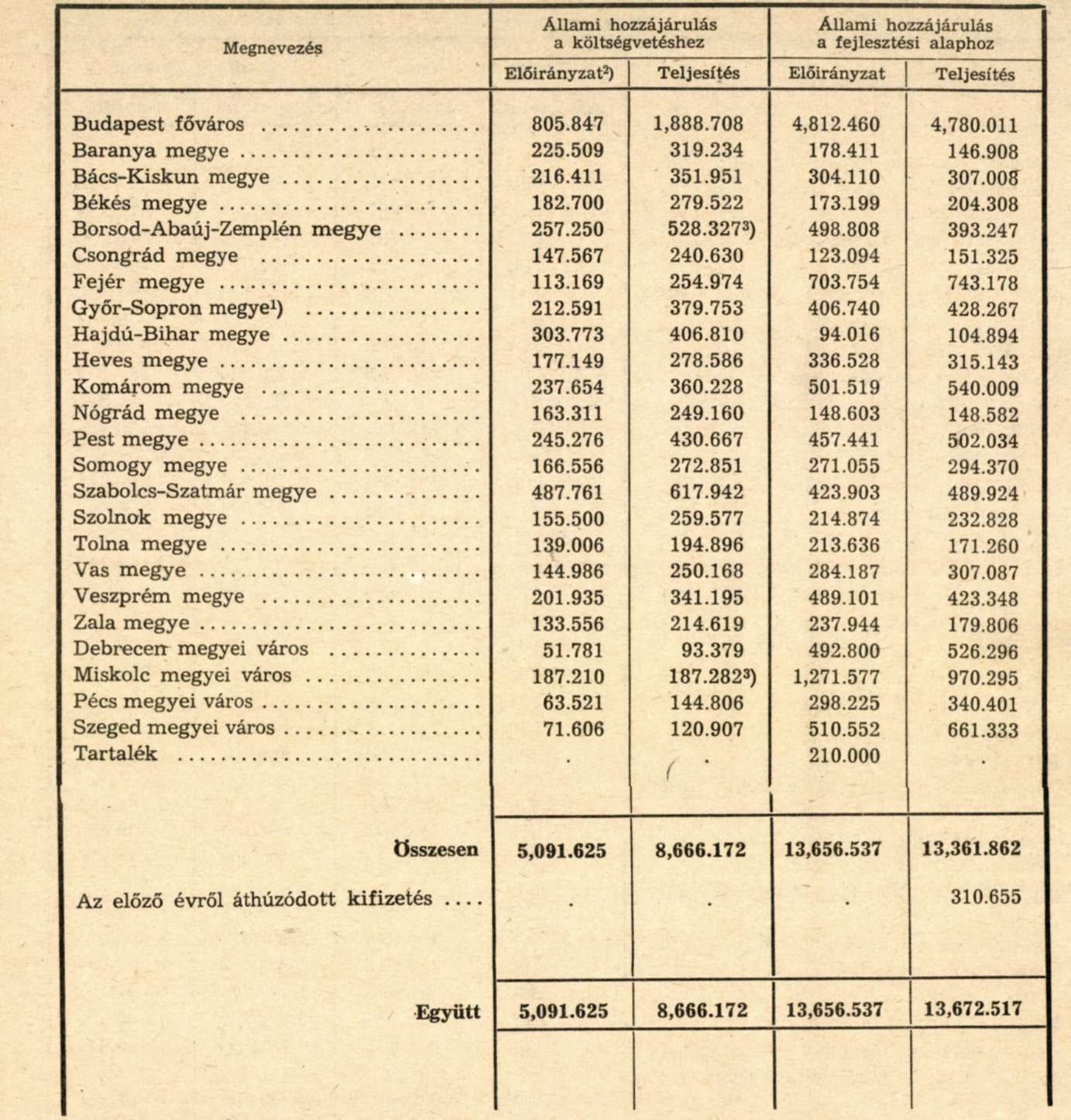 beruházásra tanácsi fejlesztési alapok pénzeszközeinek növelésére, magánlakásépítéshez nyújtott állami támogatásra, egyes állami beruházásokkal kapcsolatos forgóalapjuttatásra, vállalati fejlesztési alapok kiegészítésére, központi készletezésre és mezőgazdasági szövetkezeti beruházások támogatására elszámolt összeg 54.484 millió forint, a kiadási főösszeg 19;2%-a,