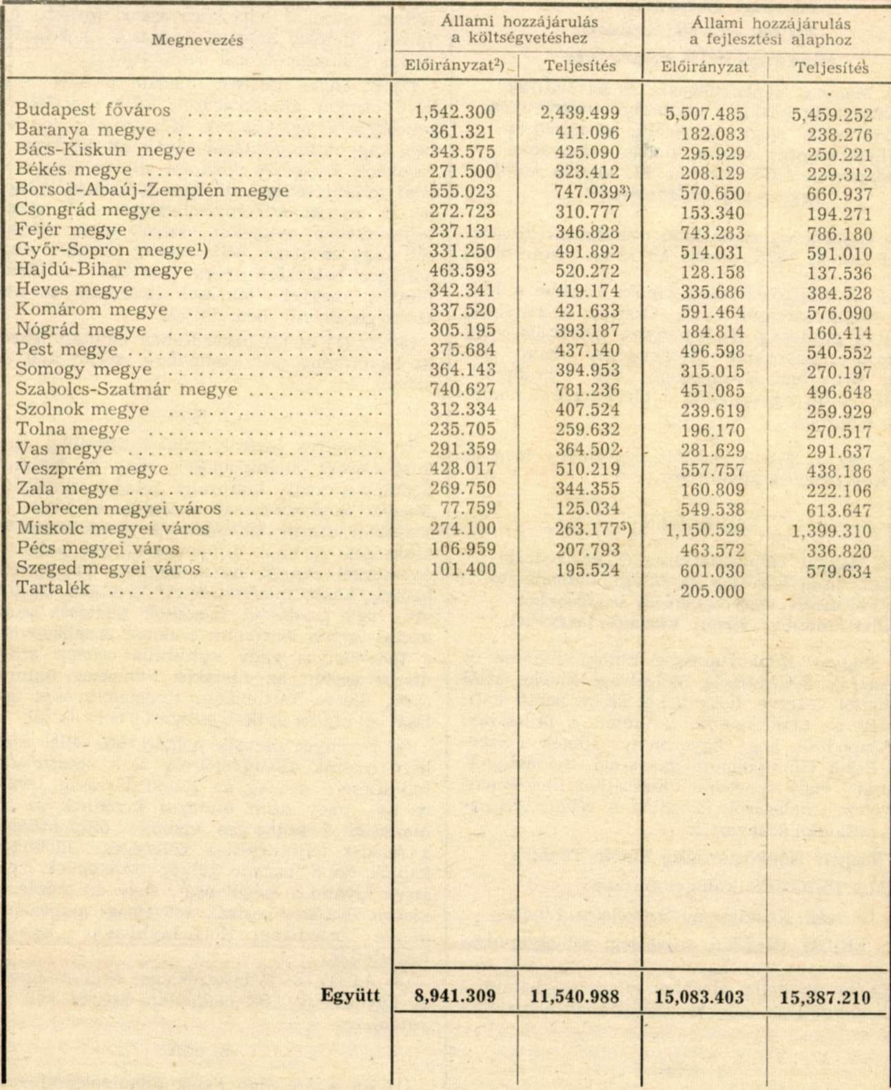 A TANÁCSOK KÖLTSÉGVETÉSÉHEZ ÉS FEJLESZTÉSI ALAPJÁHOZ NYÚJTOTT ÁLLAMI HOZZÁJÁRULÁS ELŐIRÁNYZATAINAK TELJESÍTÉSE FŐVÁROSI, MEGYEI, MEGYEI VÁROSI TANÁCSONKÉNT ÉS JOGCÍMENKÉNT