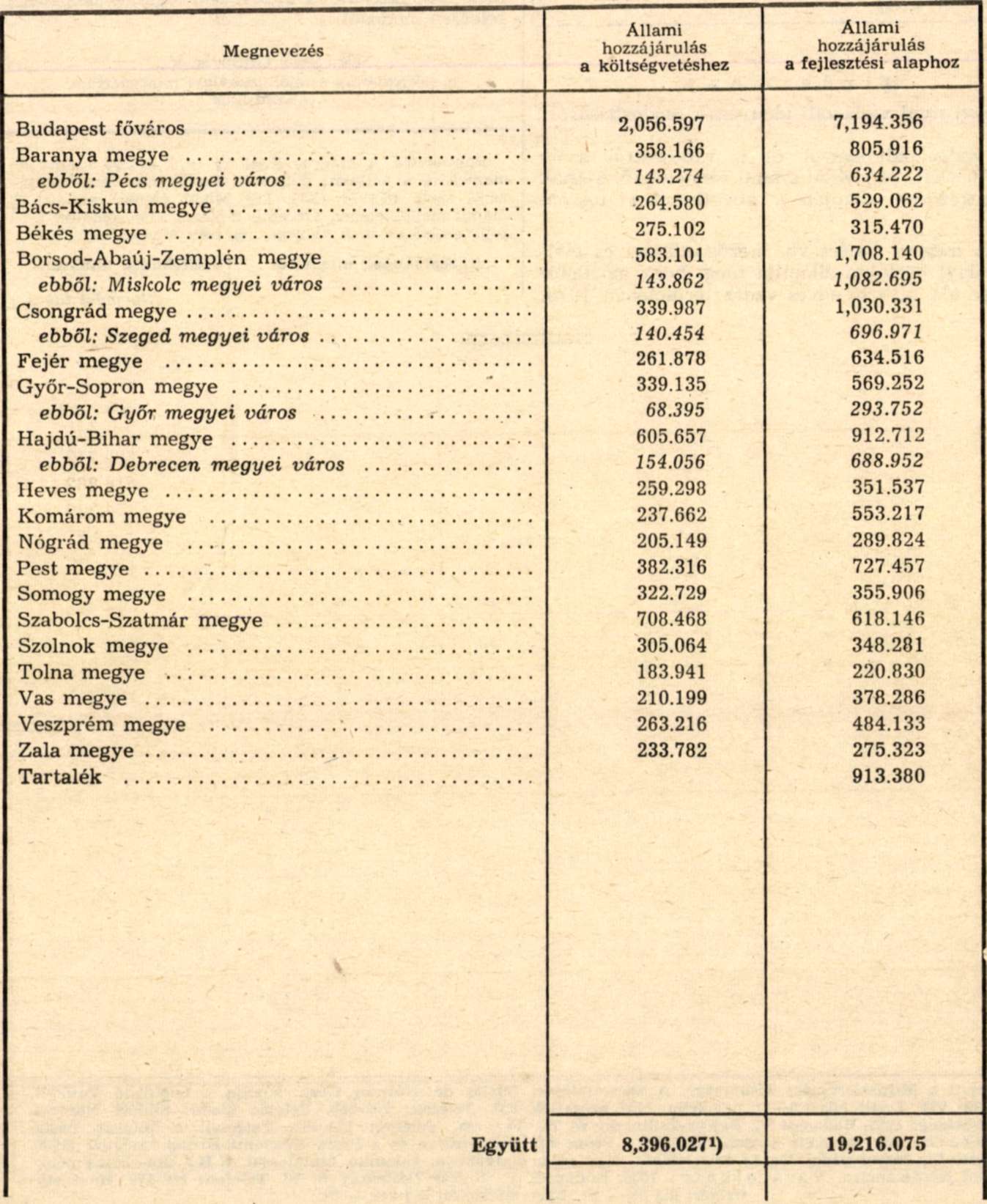 a tanácsok fejlesztési alapjához az 1975. évi V. törvény 16. §-a (1) bekezdésének b) pontja szerint folyósítandó állami hozzájárulást 19 216 millió forintra módosítja,