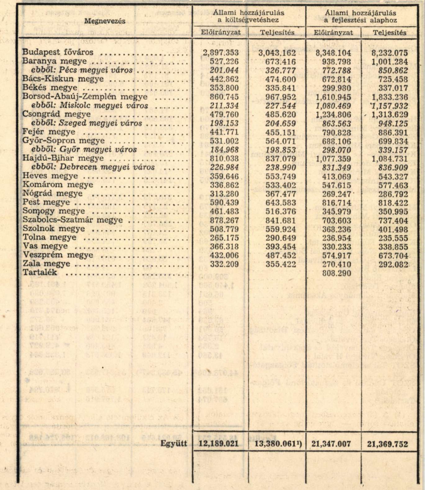 A TANÁCSOK KÖLTSÉGVETÉSÉHEZ ÉS FEJLESZTÉSI ALAPJÁHOZ NYÚJTOTT ÁLLAMI HOZZÁJÁRULÁS ELŐIRÁNYZATAINAK TELJESÍTÉSE FŐVÁROSI, MEGYEI, MEGYEI VÁROSI TANÁCSONKÉNT