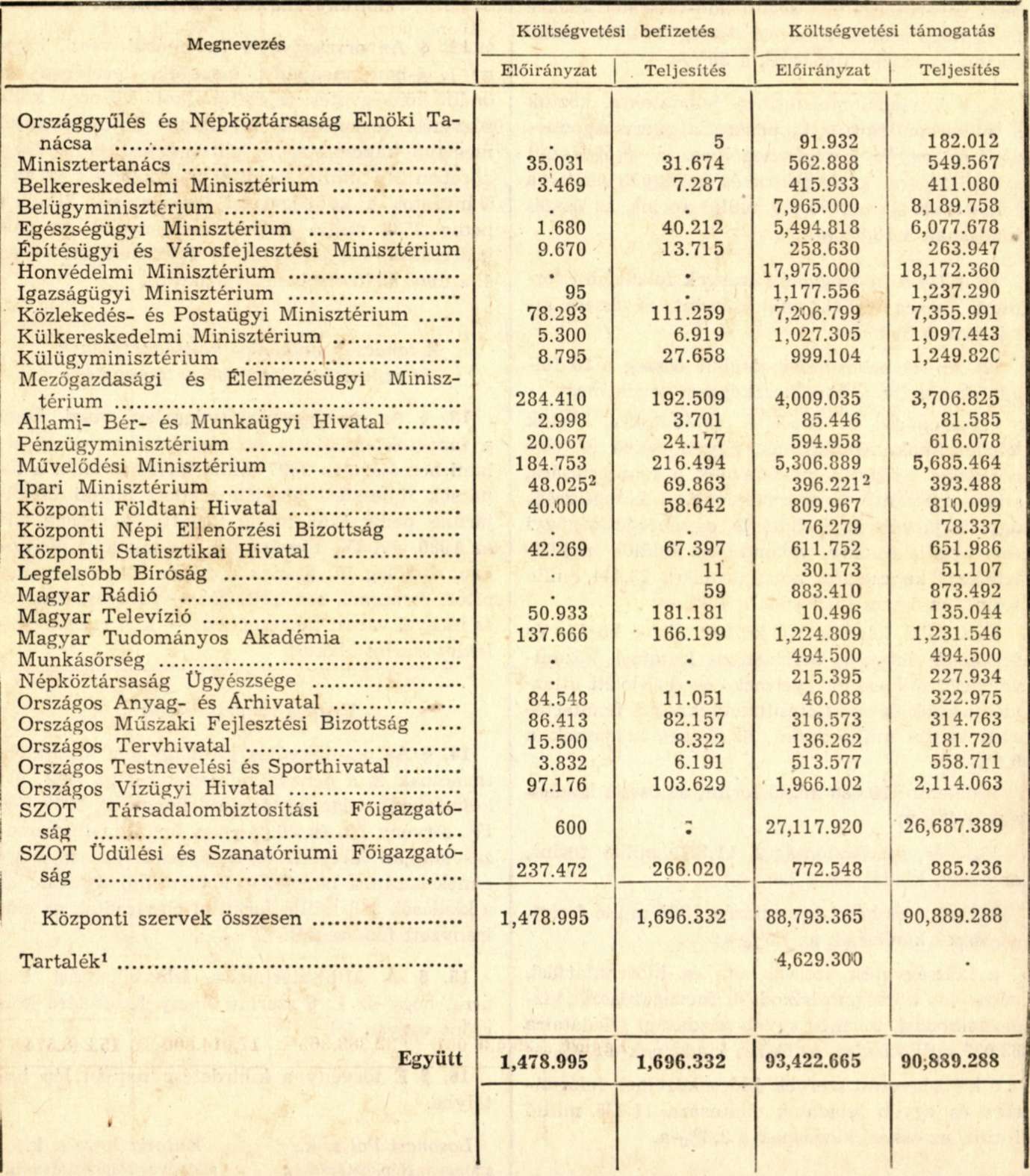 7. § Beruházásra, a tanácsi fejlesztési alapok pénzeszközeinek kiegészítésére, a magánerőből való lakásépítések állami támogatására, egyes állami beruházásokkal kapcsolatos forgóalapjuttatásra, a vállalati fejlesztési alapok kiegészítésére és a központi készletezésre elszámolt összeg 59.691 millió forint, az összes kiadásnak a 12,4%-a.
