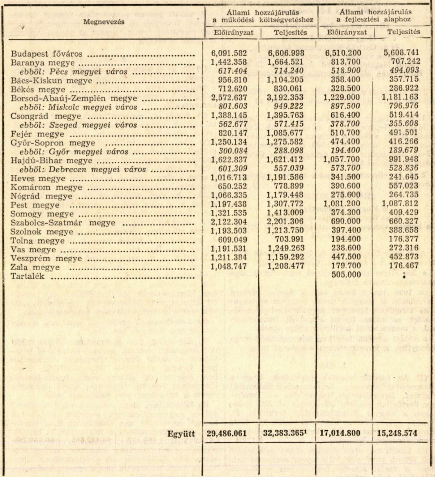 1 Az állami hozzájárulás a központi tartalékok átadása, és az előirányzatok átcsoportosítása miatt emelkedett, a városi és községi hozzájárulás, valamint a tanácsi vállalatok nyereségadó tervszámának törvényi felhatalmazás alapján történt módosulása következtében csökkent.