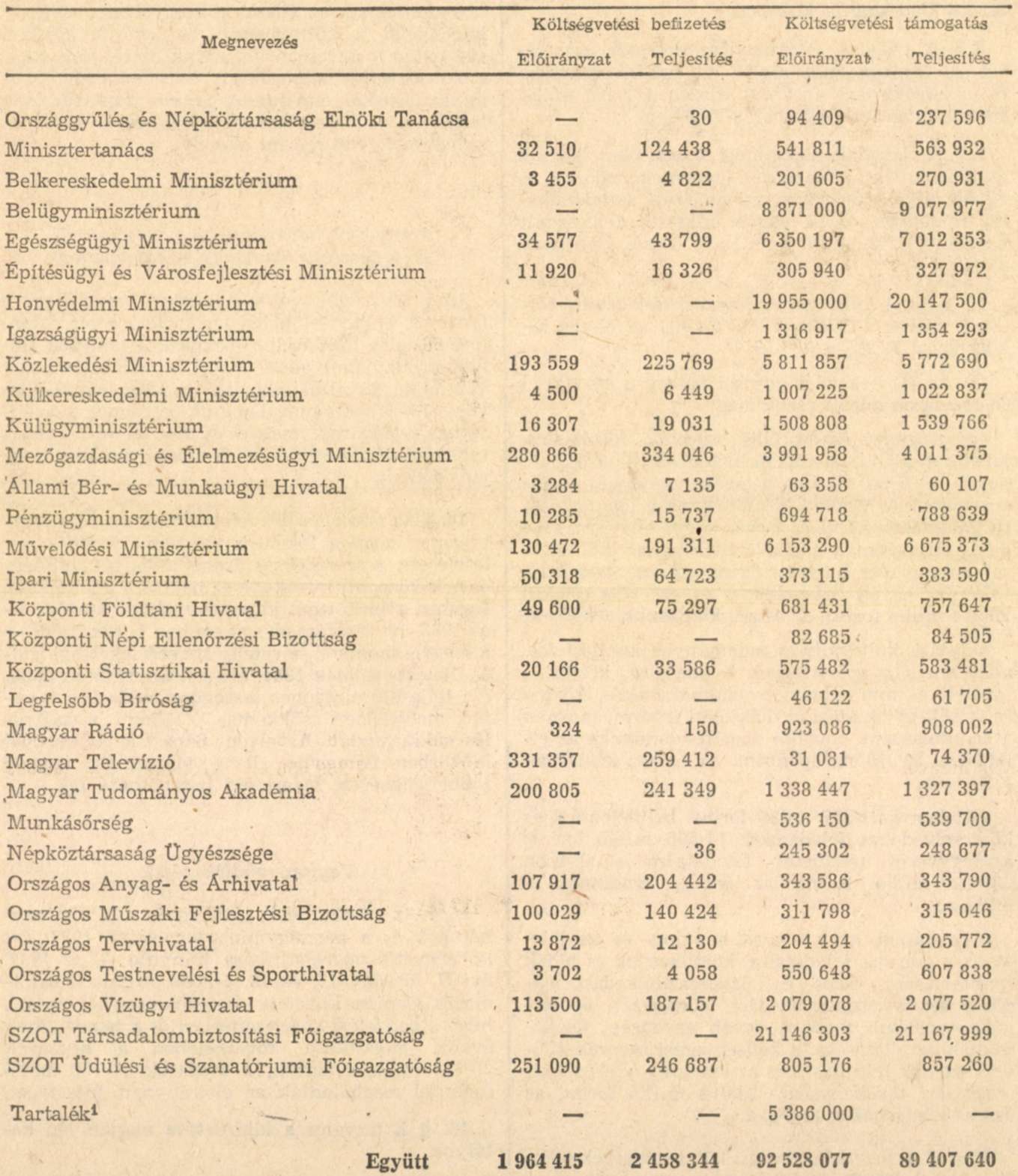 12. § Az országgyűlés tudomásul veszi, hogy az 1. §-ban megjelölt összegek keretében az önálló költségvetési fejezetet alkotó központi költségvetési szerveknek az állami költségvetéssel meglevő kapcsolatai a költségvetési befizetések körében 494 millió forinttal meghaladták az előirányzatot, a költségvetési támogatások körében pedig 3120 millió forinttal elmaradtak az előirányzattól, s a teljesítés - fejezetenként részletezve - az 1. számú melléklet szerint alakult.