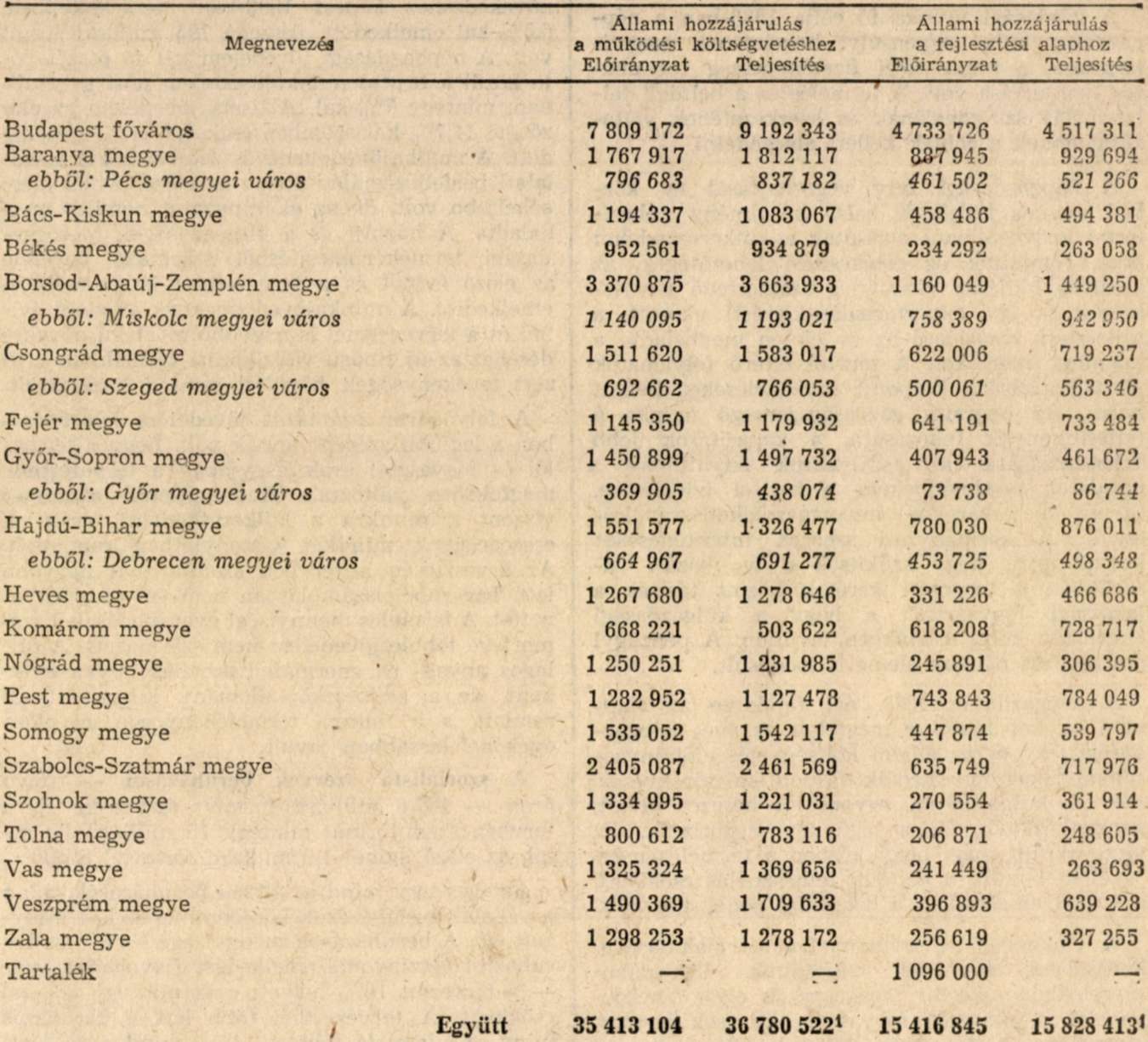 Állami hozzájárulás a fővárosi, a megyei és a megyei városi tanácsok működési költségvetéséhez és fejlesztési alapjához
