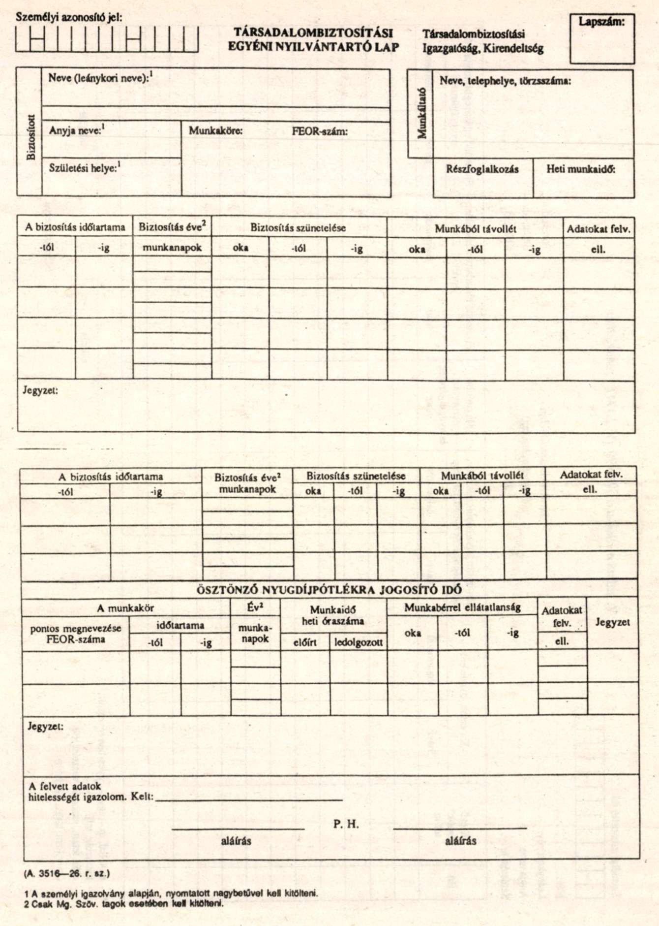 Ha a nyilvántartó lap valamely rovata betelt, a biztosítottról új társadalombiztosítási egyéni nyilvántartó lapot kell kiállítani és vezetni.