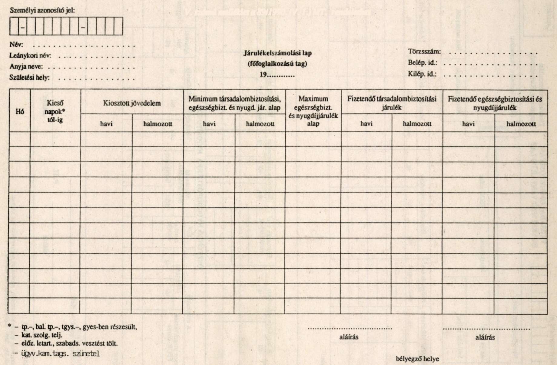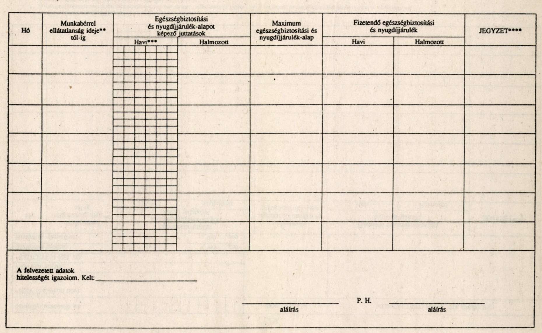 A "Munkából távollét oka -tól -ig" rovatot kitölteni nem kell. Amennyiben a külföldön munkát vállaló, illetőleg ösztöndíjas társadalombiztosítási járulékfizetési kötelezettségének nem tesz eleget, ezt a tényt - az időtartam megjelölésével - "jár. nem fiz." megjegyzéssel a "Jegyzet" rovatba kell felvezetni.