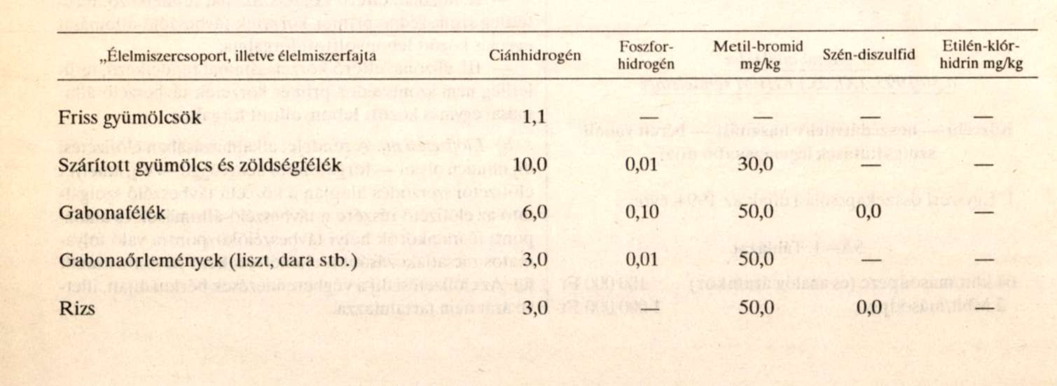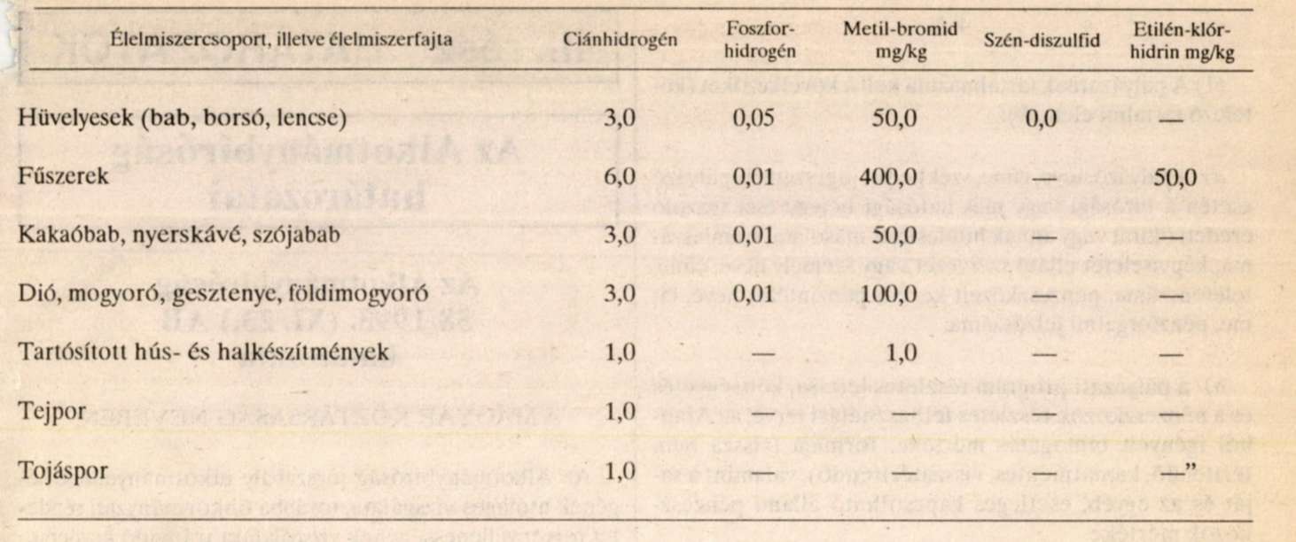 Az élelmiszerek ártalmas vegyi szennyeződésének elhárításáról szóló - többször módosított - 4/1978. (VI. 25.) EüM rendelet (a továbbiakban: R.) 1. számú mellékletének 3. pontjában szereplő táblázat helyébe az alábbi táblázat lép: