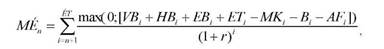 10. § (1) A beruházás adott évben számított maradványértéke a piaci villamosenergia-értékesítés feltételezése melletti, a tervezett élettartamból még hátralévő évekre vonatkozó pénzáramok diszkontált értéke alapján határozandó meg. Az n-edik évre vonatkozó maradványérték meghatározása a 6. mellékletben meghatározott képlet szerint történik.