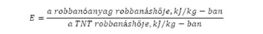 62. TNT-egyenérték: az a szám, amely megmutatja, hogy valamely robbanóanyag robbanáshője hányszorosa a TNT (2,4,6-trinitro-toluol) robbanáshőjének;