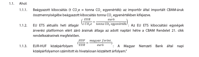 az importáruk karbonintenzitását ellensúlyozó mechanizmusról szóló 2023. évi CV. törvény végrehajtásának egyes szabályairól